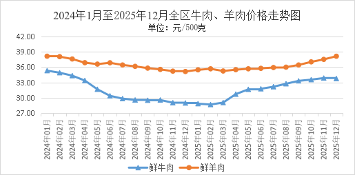 牛肉、去骨羊肉12月全区平均零售价格分别为每500克33.75元、38.12元。环比,去骨羊肉价格上涨1.65%,牛肉价格略降0.30%。同比,牛肉、去骨羊肉价格分别上涨16.54%、8.51%。