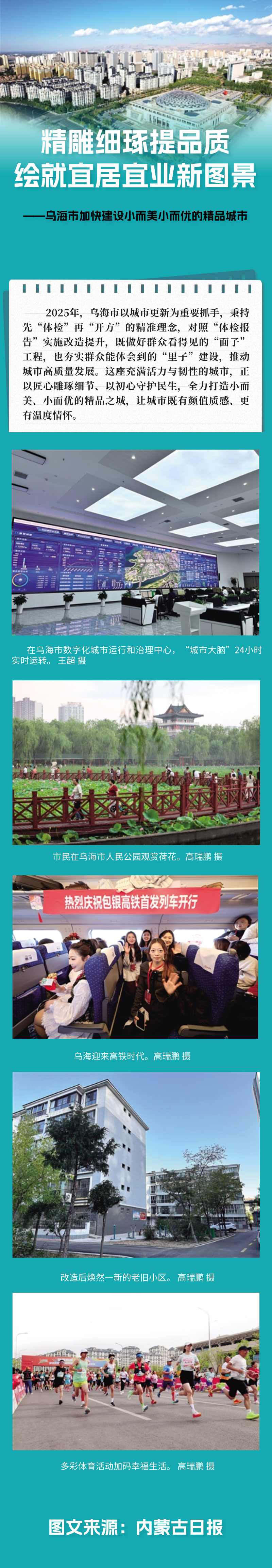 从绿道串联美景、老旧小区焕新,到管网升级筑牢安全根基;从高铁贯通畅联四方,到智慧治理精准惠民,2025年的乌海,以城市更新为抓手,以交通升级为支撑,以智慧治理为赋能,在雕琢城市细节中守护民生初心。未来,这座城市将持续深耕小而美、小而优的发展路径,让城市运行更有序、服务更暖心、生活更美好,用点滴变化汇聚成群众看得见、摸得着的幸福图景。