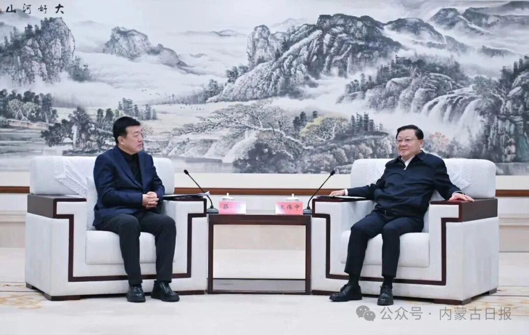 王伟中代表自治区党委和政府欢迎吕军一行到访,并向他们介绍了自治区经济社会发展情况。他说,内蒙古与中国大唐一直保持着良好的合作关系,我们对中国大唐长期以来给予内蒙古的支持表示感谢。当前,我们正在深入学习贯彻党的二十届四中全会和中央经济工作会议精神,全面贯彻落实习近平总书记对内蒙古系列重要讲话重要指示精神,按照自治区党委十一届十次全会部署要求,大力发展现代能源经济,加快建设国家重要能源和战略资源基地,这将为包括中国大唐在内的能源企业在内蒙古发展提供广阔空间。希望中国大唐充分发挥自身优势,持续加大新能源、先进绿色高载能、绿电制氢氨醇、现代煤化工等领域的项目投资力度,积极在我区布局科技研发平台,助力内蒙古打造新质生产力、实现高质量发展。我们将持续打造市场化法治化国际化一流营商环境,为包括中国大唐在内的各类企业发展提供优质高效服务。