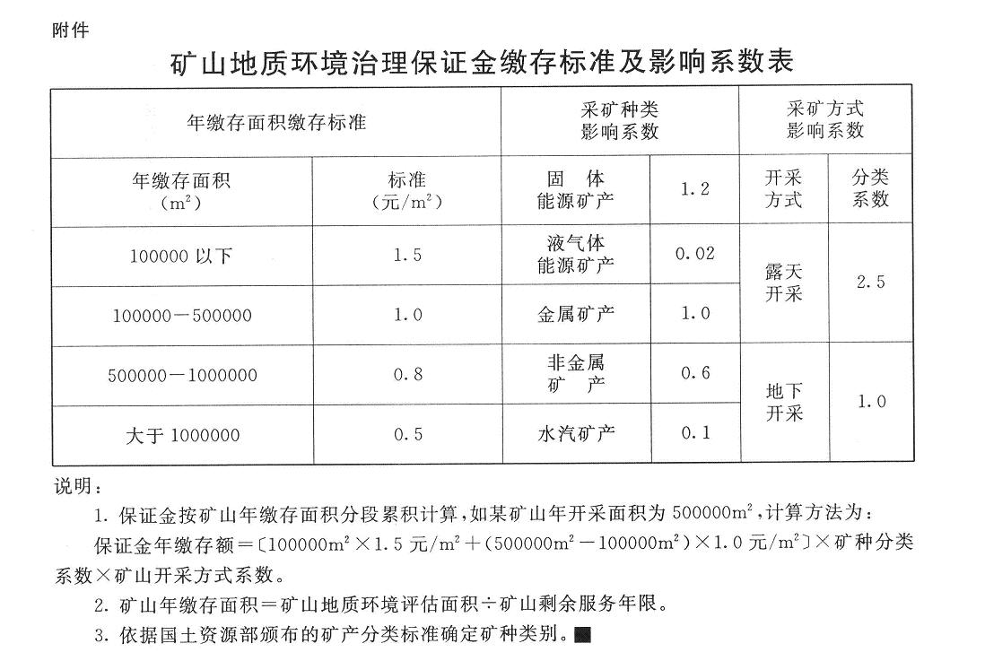 附件:矿山地质环境治理保证金缴存标准及影响系数表