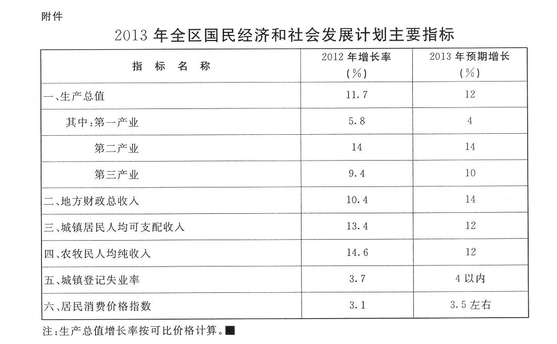 附件:2013年全区国民经济和社会发展计划主要指标