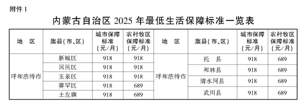 附件:1.内蒙古自治区2025年最低生活保障标准一览表