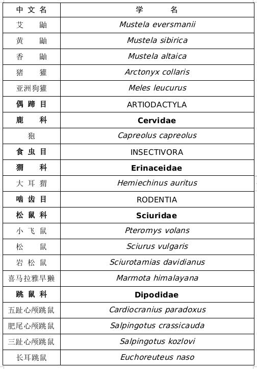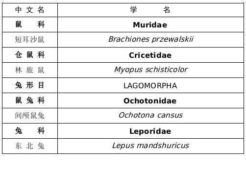 内蒙古自治区重点保护陆生野生动物名录