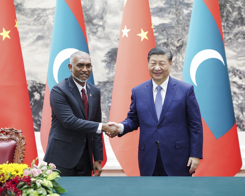 1月10日下午,国家主席习近平在北京人民大会堂同来华进行国事访问的马尔代夫总统穆伊兹举行会谈。新华社记者 翟健岚 摄