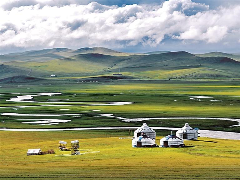 天似穹庐,笼盖四野。夏秋季节,走进敕勒川草原,绵延绿浪涌向远方,在广袤大地铺展,与阴山山脉相接。“风吹草低见牛羊”的草原美景仿佛穿越千年而来,依旧震撼人心。
